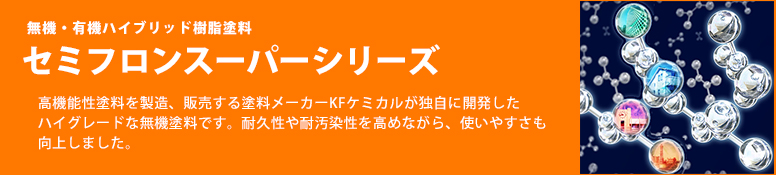 紫外線や雨・風、塩害など過酷な気候条件に強いという大きなメリットがあり、 長期間にわたって建築物の美観を保つことで、 メンテナンス回数を確実に減らし、 トータルコスト削減に貢献します。また、セミフロンスーパーシリーズは紫外線 エネルギーに 負けない、結合の強い塗料樹脂で設計されており、長期間光沢を維持します。